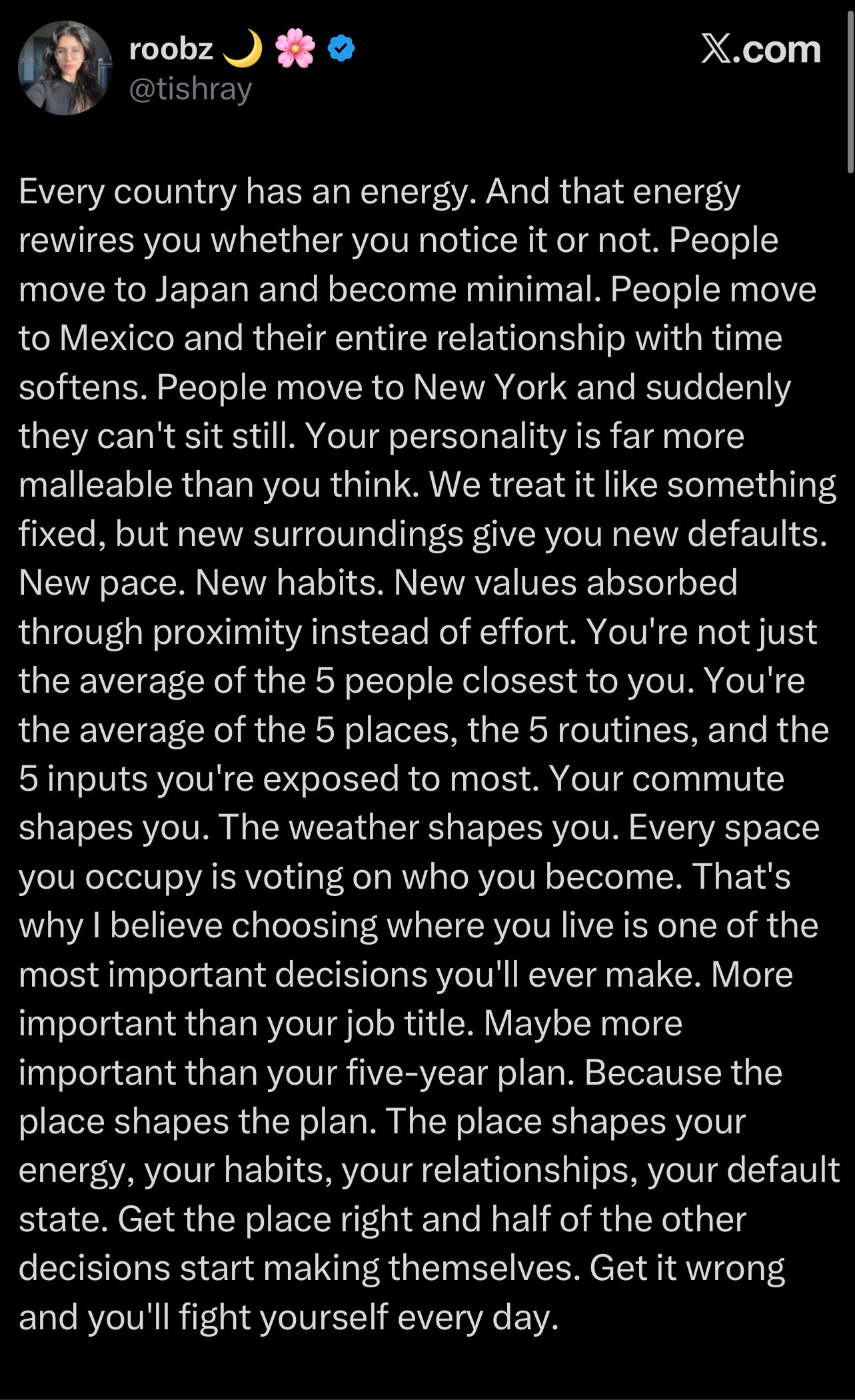 To end, just a note here on the importance of the space(s) that you create for yourself, a post on Substack I saw yesterday that captures the particularity of this passage in time (life).